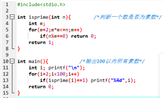 1、调试程序:输出100以内所有的素数(用函数实现)。