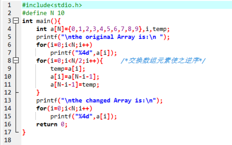 2、 调试程序:对一维数组中的元素进行逆序排列。