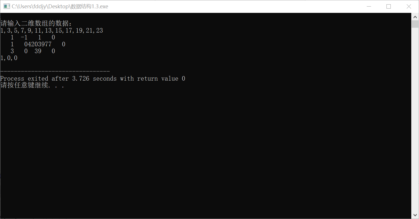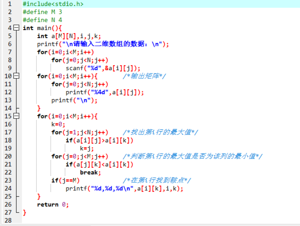 3、 调试程序:在二维数组中,若某一位置上的元素在该行中最大,而在该列中最小,则该元素即为该二维数组的一个鞍点。要求从键盘上输入一个二维数组,当鞍点存在时,把鞍点找出来。