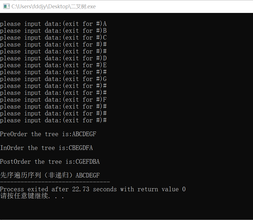 printf("\n\n先序遍历序列(非递归)");