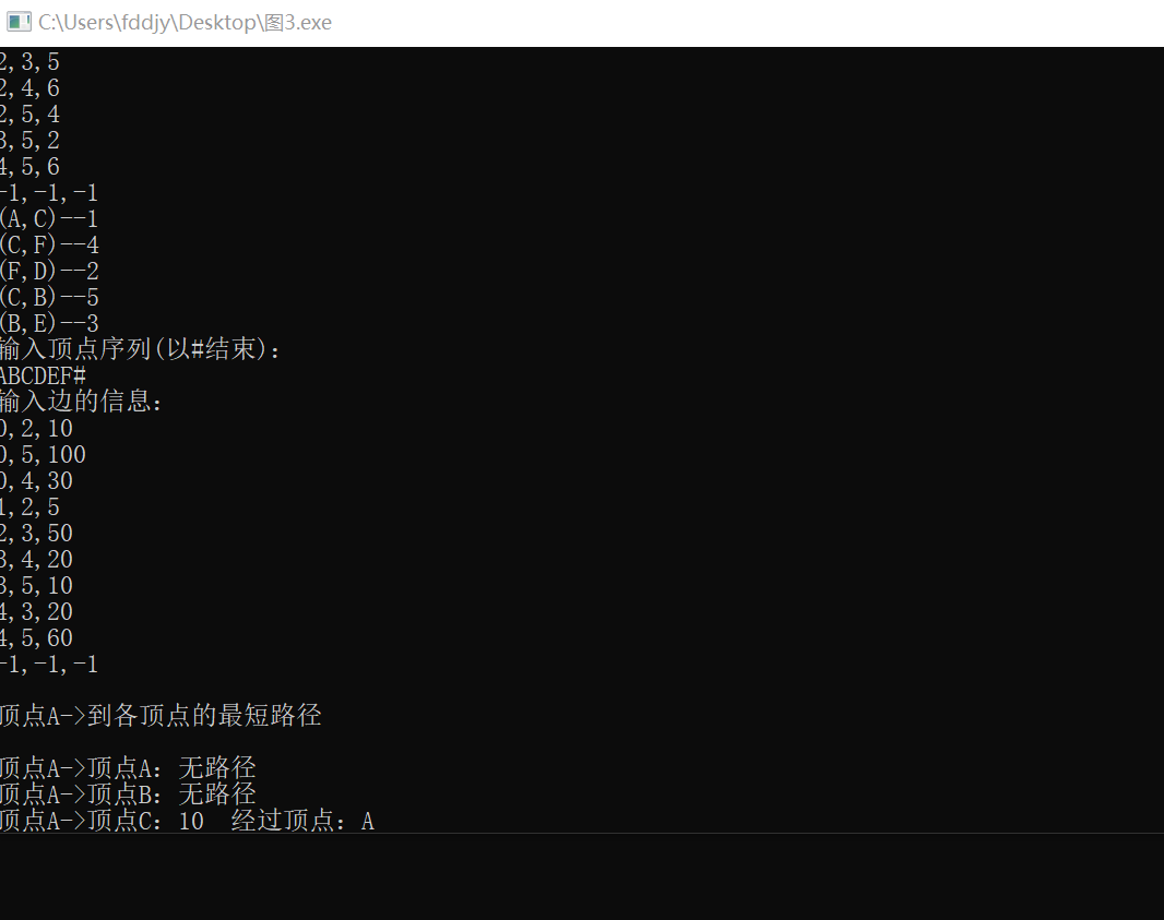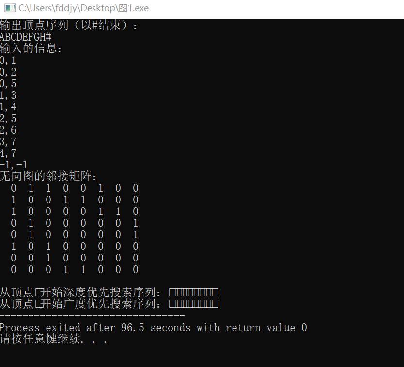 printf("输出顶点序列(以#结束):\n");