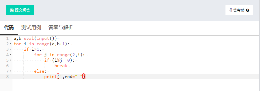 编程实现输出指定范围内的素数,输入以逗号间隔,输出以空格间隔。指定范围由用户输入指定。
