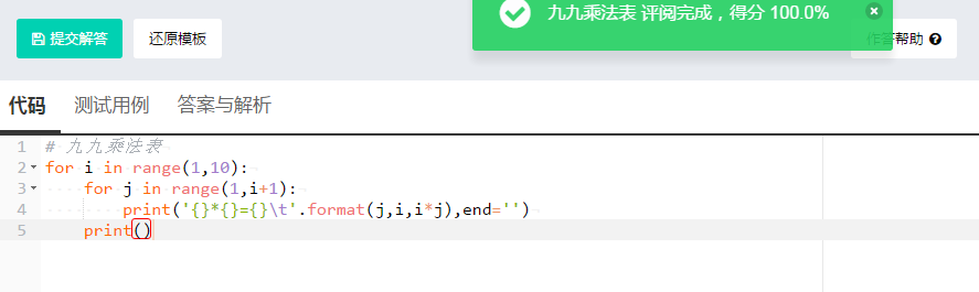 2)九九乘法表