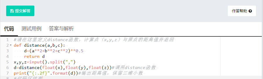 d=distance(float(x),float(y),float(z))#调用distance函数