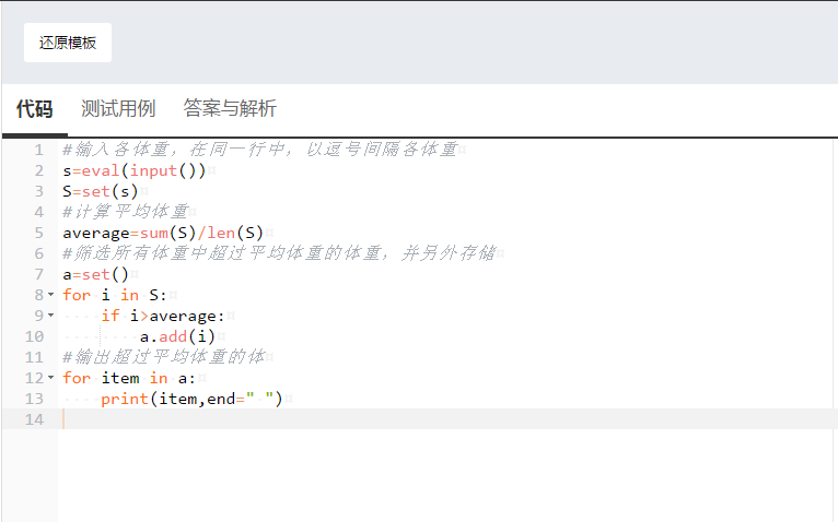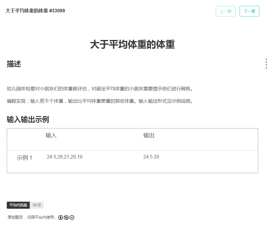 编程实现:输入若干个体重,输出比平均体重更重的那些体重。输入输出形式见示例说明。