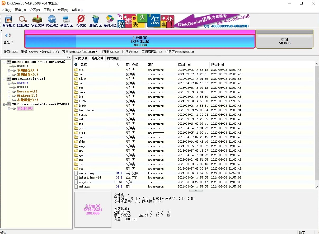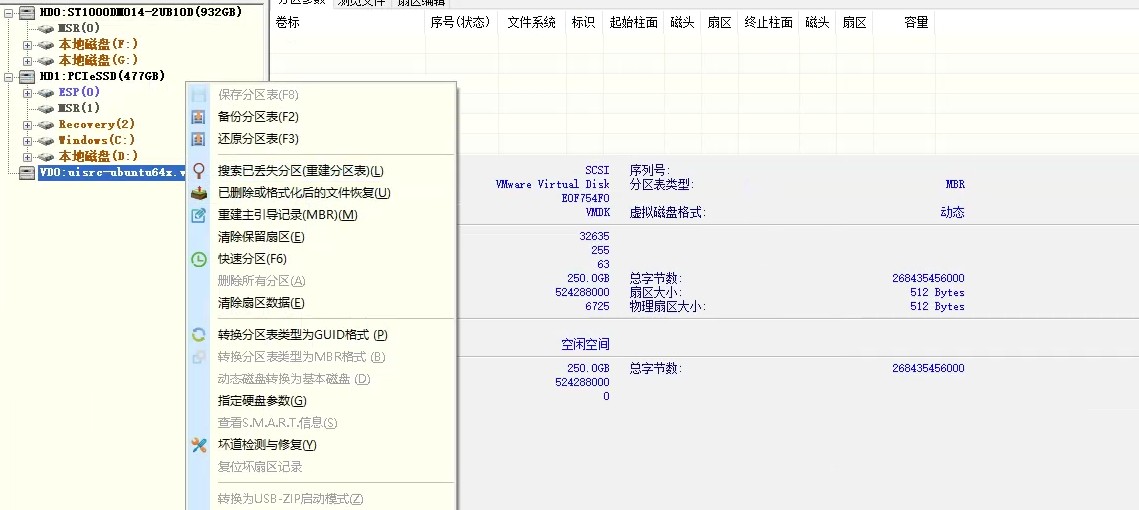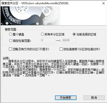后来找到DiskGenius打开虚拟机硬盘文件的方法,搜索已丢失分区,找到硬盘里面的文件,再点击保存更改,会重建引导记录。之后再使用VMware打开系统,正常进入系统。