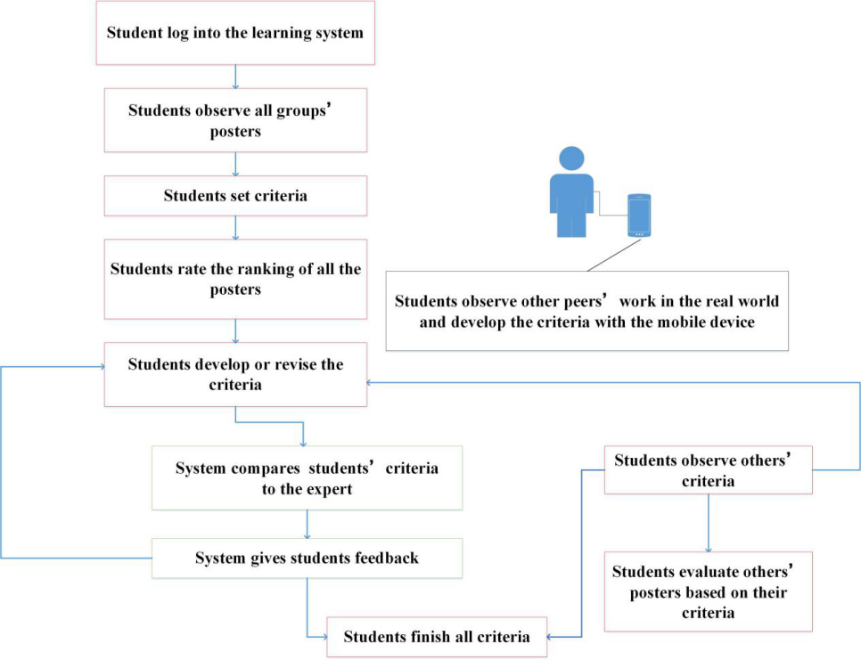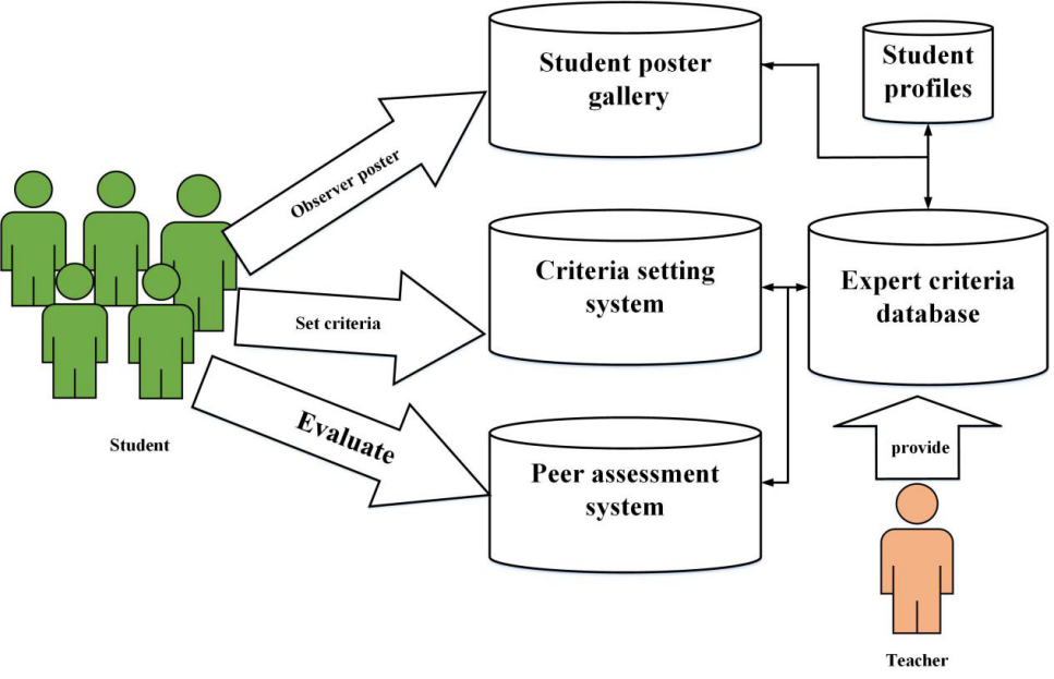 为了鼓励学生进行更高层次的思考,开发了一个移动学习系统,以支持互动式同伴评价标准的发展。该系统由学生海报画廊、标准设置系统、同伴评价系统、学生档案和专家标准数据库。