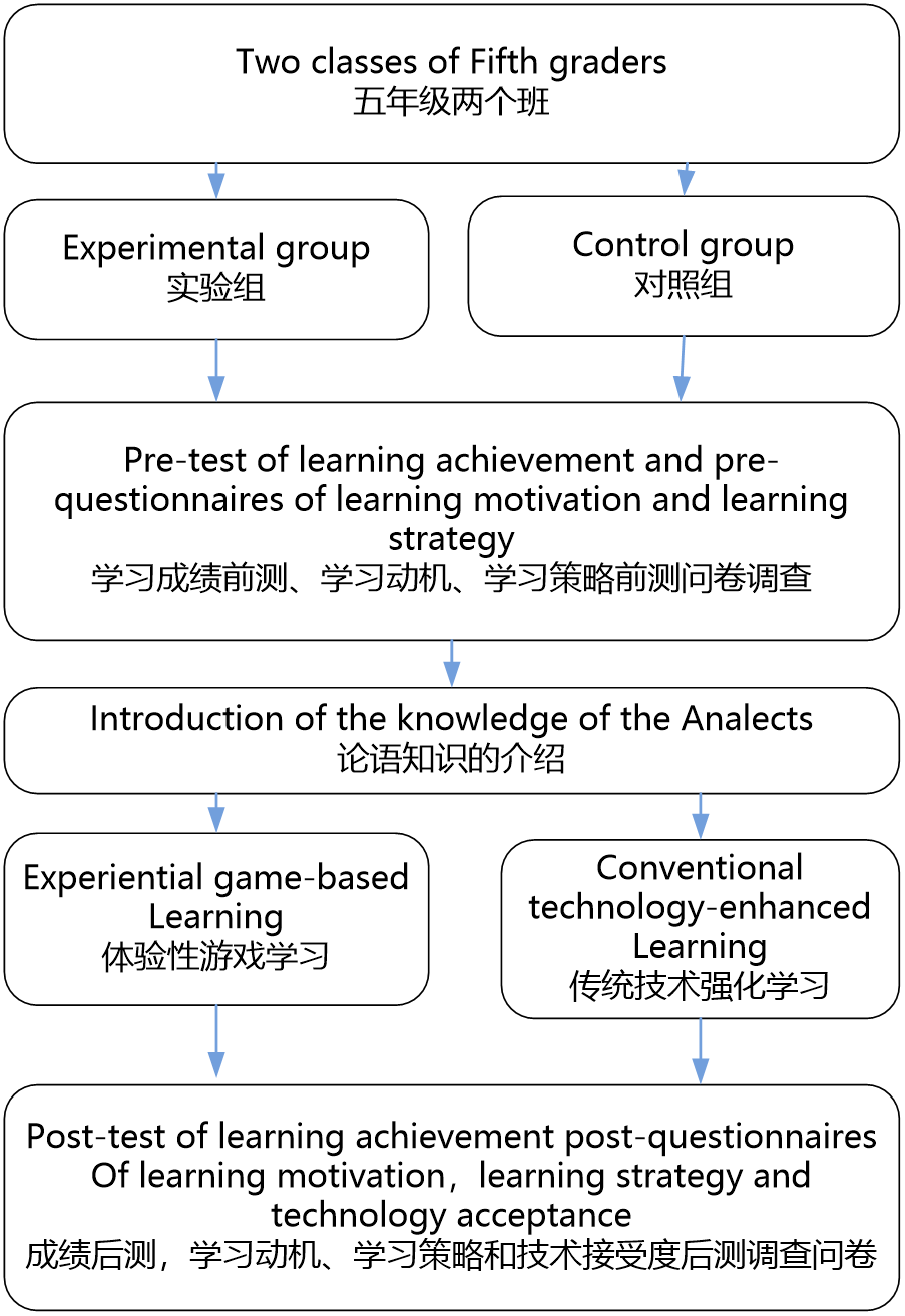 前测和后测由两位经验丰富的教师进行。前测是为了评价学生对《论语》的基本概念的理解,后测则是为了评价学生对《论语》中论语含义的理解程度。两个测试都包括20个选择题和3个开放式问题,满分为30分。