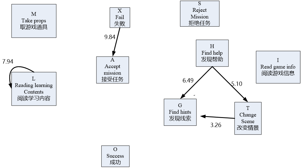 在学习活动中,学生的学习行为都被自动记录在学习系统中。 此外,在同一英语情境下的计算机游戏设计中,采用顺序分析的方法,探讨学生的学习行为是否会受到不同学生的学习行为。