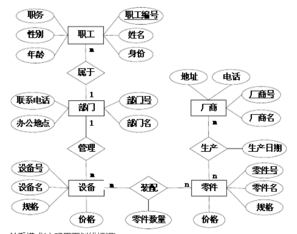 装配(设备号,零件号,零件数量),设备号为引用设备的外码,零件号为引用零件的外码 生产(厂商号,零件号,生产日期)或 生产(厂商号,零件号,生产日期)