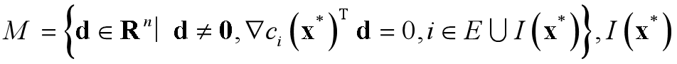 是x^∗处的有效约束指标集; 则x^∗是约束问题(4.1)的严格局部解.