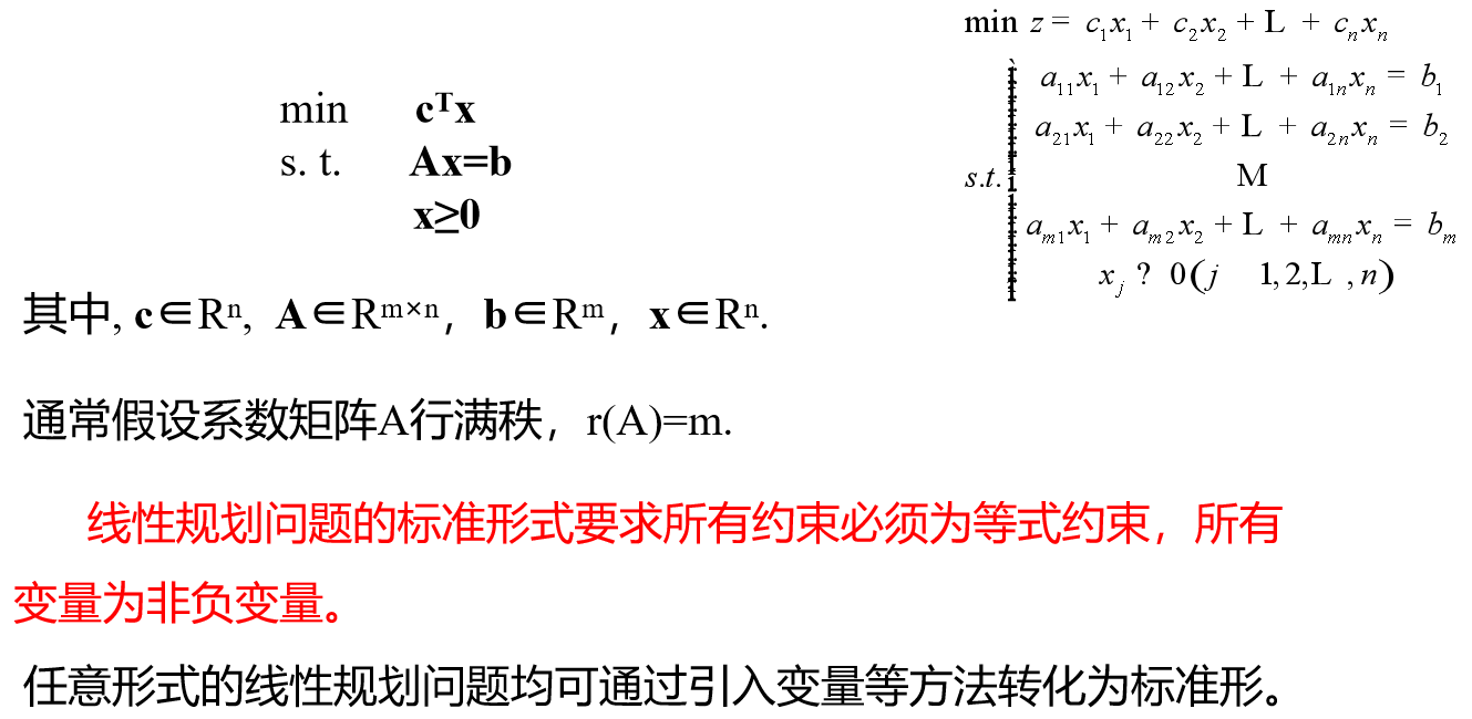 具有如下形式的线性规划,称为标准形式: