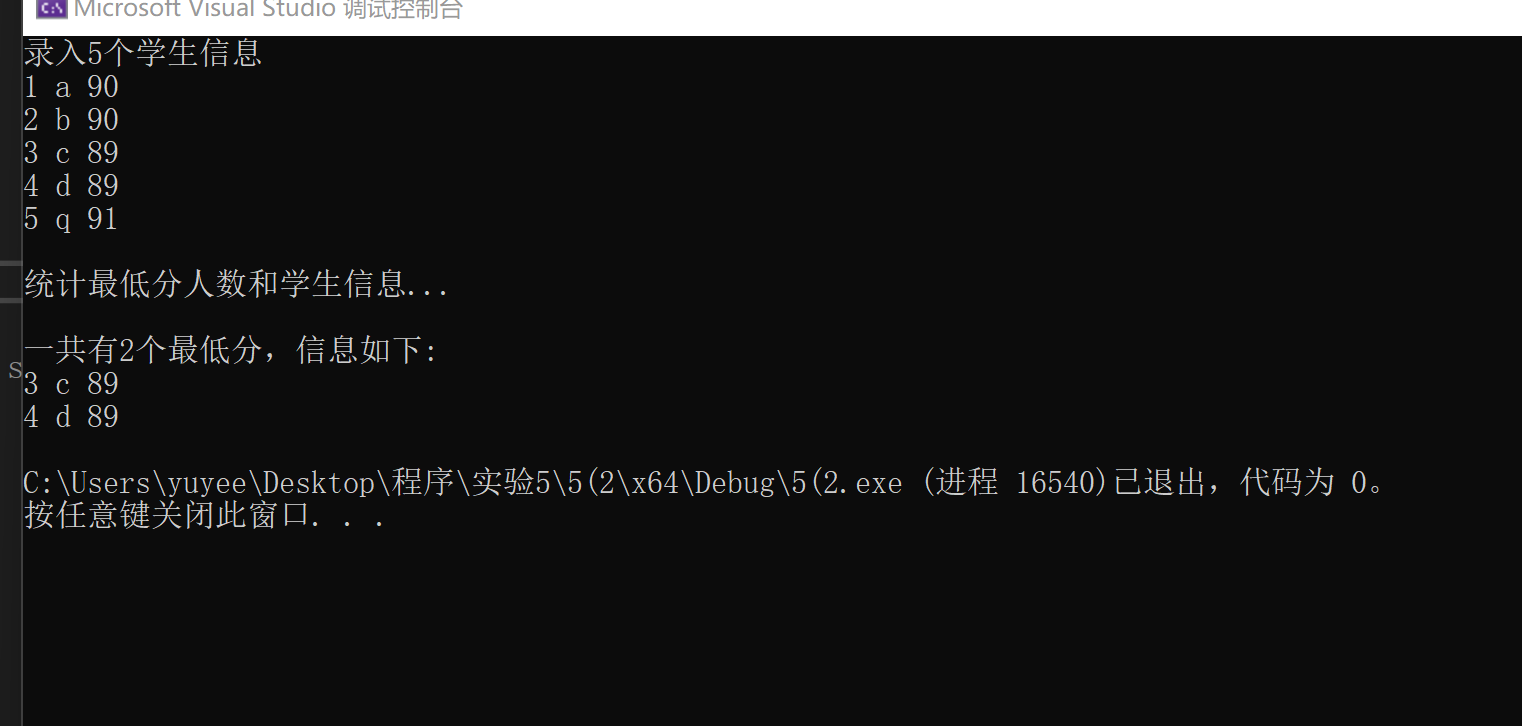 printf("\n一共有%d个最低分,信息如下:\n", count);
