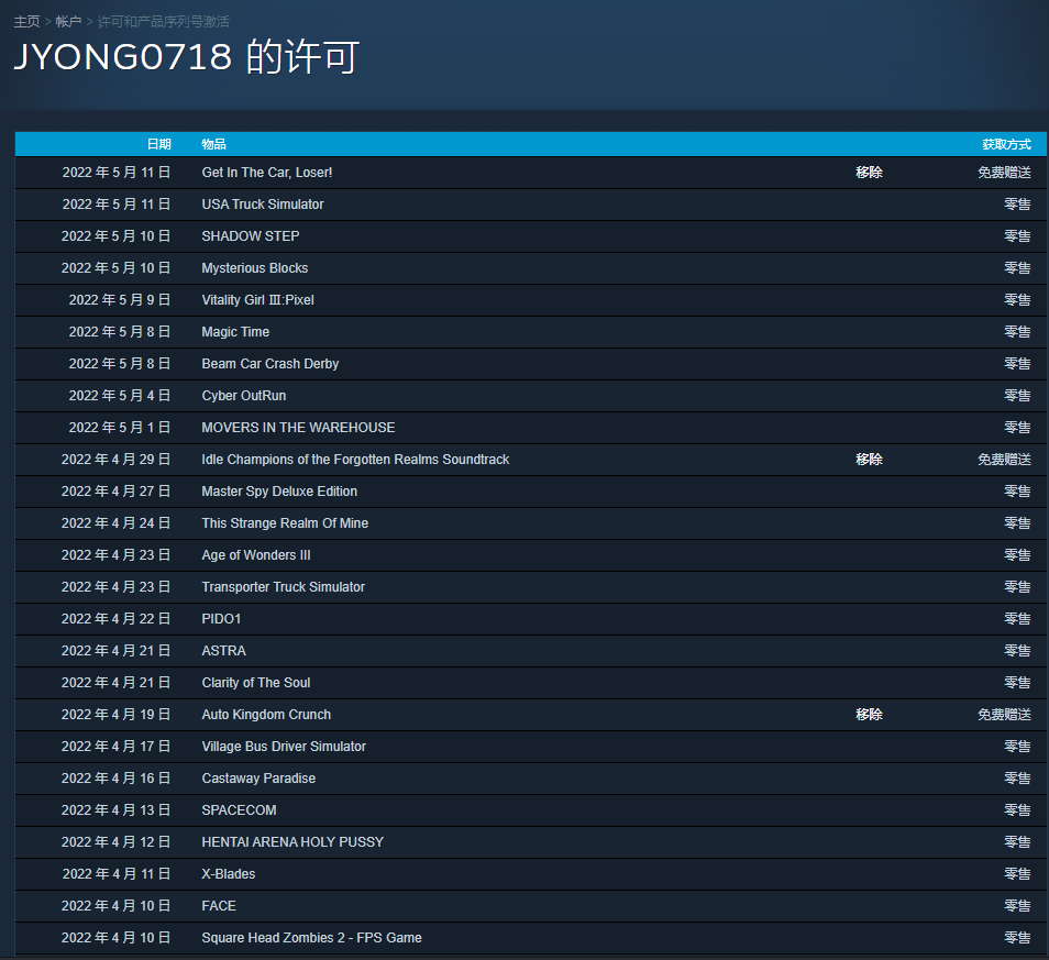 这些零售的都是cdk激活的,免费赠送应该是本身就免费的游戏。