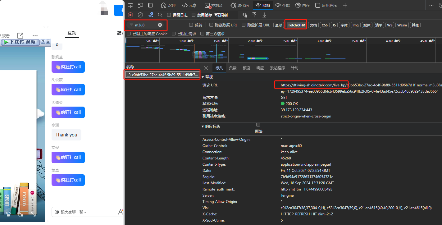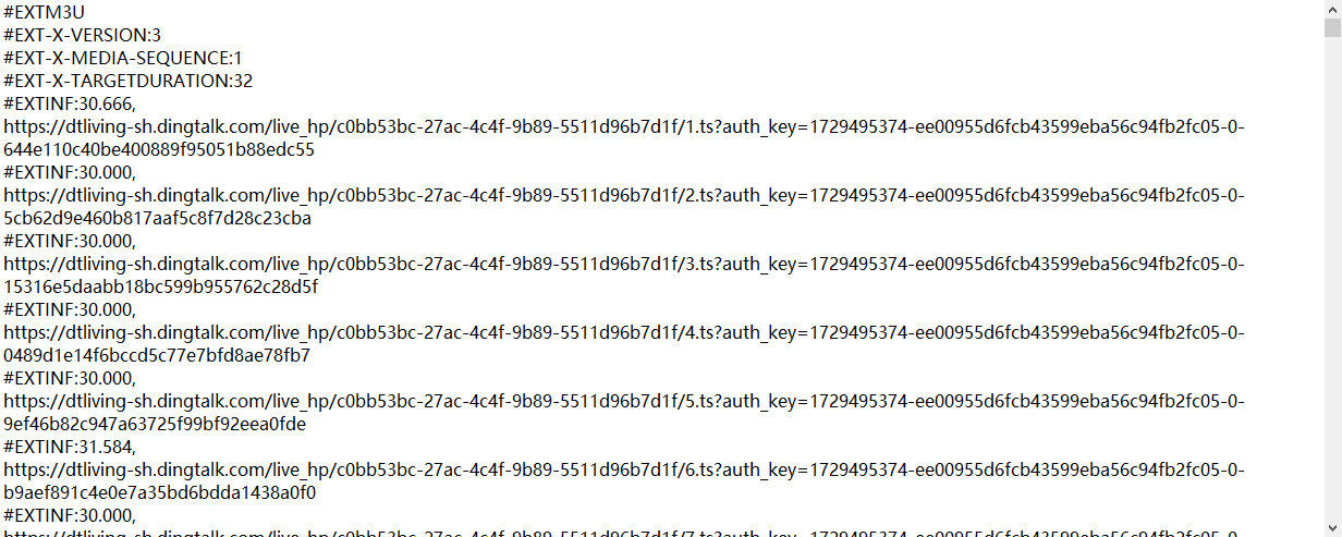 这就好办了用上面m3u8的网址补全,我还发现钉钉服务器架设在全国好多地方,有好几个通道,如:sh(上海) bj(北京) sz(深圳) vip(会员)。如果用错了地址也是无法下载的。