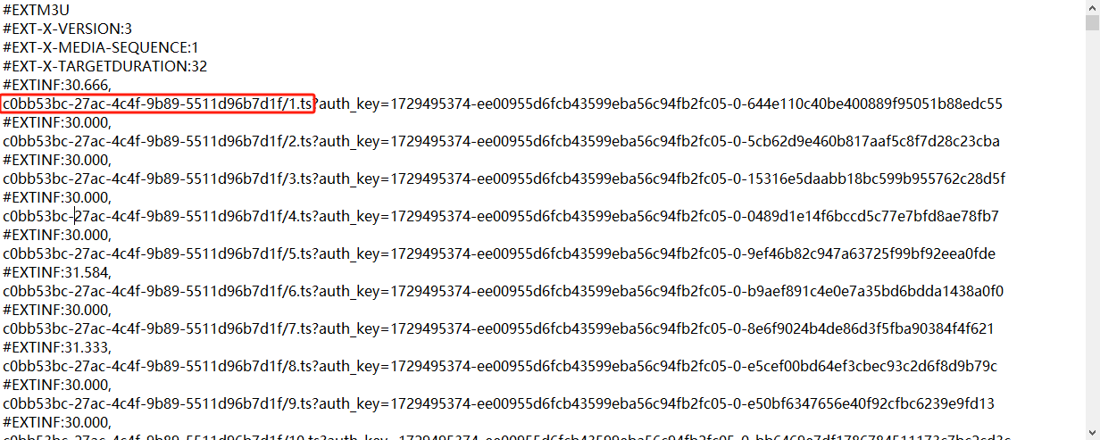 然后把m3u8下载下来,用记事本打开,可以看到所有的ts文件,但是url不完整。