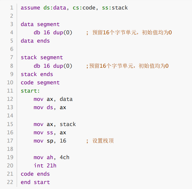 ② 假设程序加载后,code段的段地址是X,则,data段的段地址是_X-2___, stack的段地址是_X-1___。