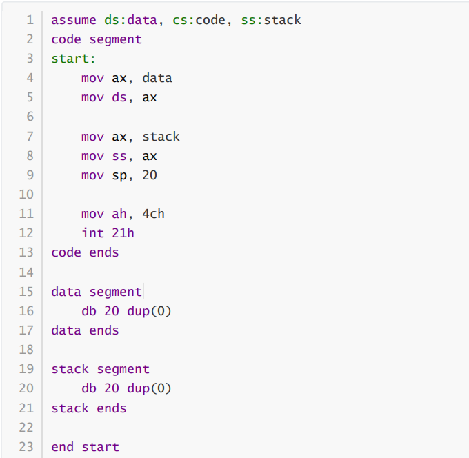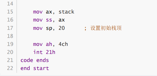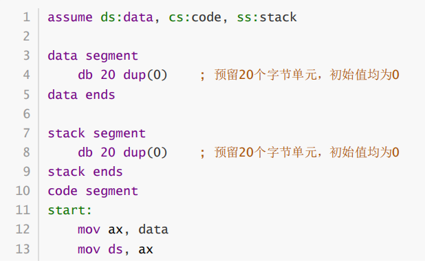 ② 假设程序加载后,code段的段地址是X,则,data段的段地址是_X+2___, stack的段地址是_X+4___。