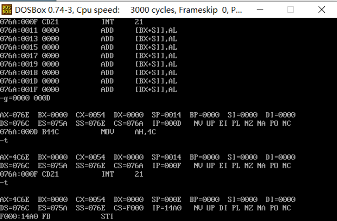 对程序task1_4.asm进行汇编、连接,用debug加载、跟踪调试,基于结果,回答问题。