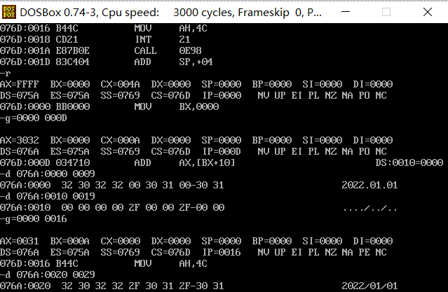 db 50, 48, 50, 50, 0, 48, 49, 0, 48, 49 ; ten numbers