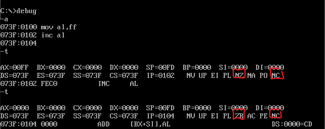 ② inc指令对标志寄存器中的零标志位ZF(Zero Flag)、进位标志位CF(Carry Flag)是否有影响?