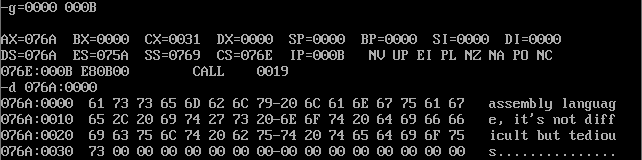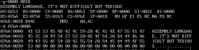 对程序进行汇编、链接,得到可执行程序task1.exe。在debug中调试程序,并回答问题。