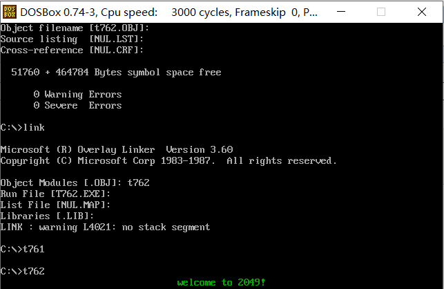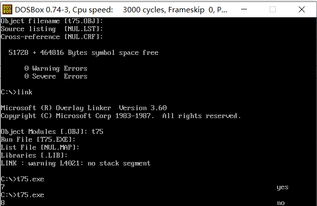 对源程序task5.asm进行汇编、链接,得到可执行文件task5.exe。