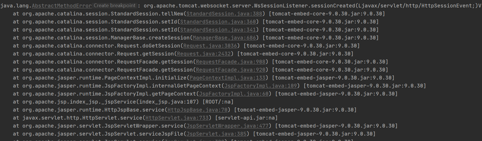 java.lang.AbstractMethodError: org.apache.tomcat.websocket.server.WsSessionListener.sessionCreated