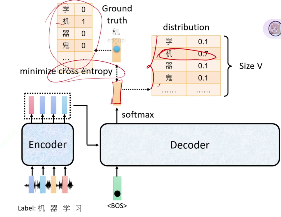 输入经过encoder得到特征,4个特征当作decoder的输入(打辅助),把标签拿过来做输入得到序列