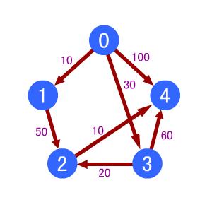 上面就是路线,为方便起见,店铺都用数字表示,0表示WY的起点,店与店之间以及起点与店距离用d表示。WY从0开始到4店铺 那么最短路线为0-->3-->2-->4 总长为 60。