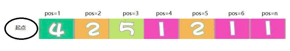 在起点跳到第1个位置,1->5->7