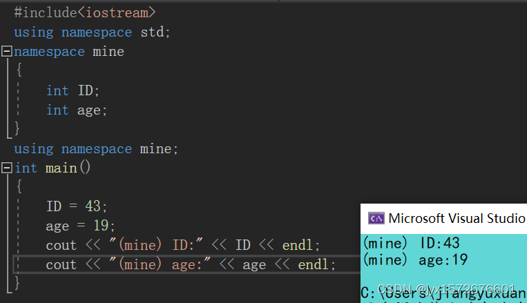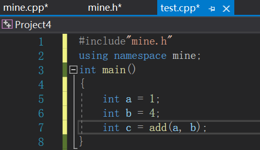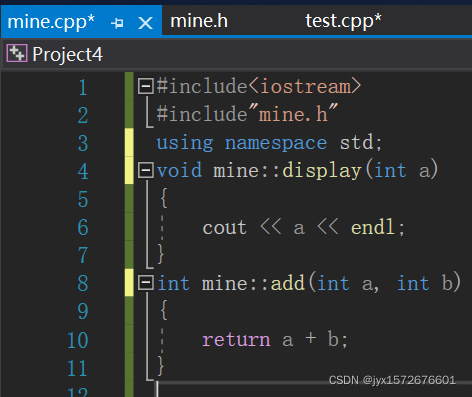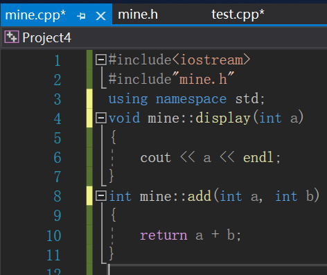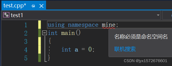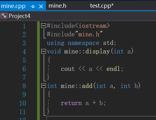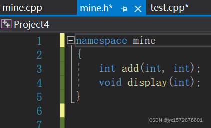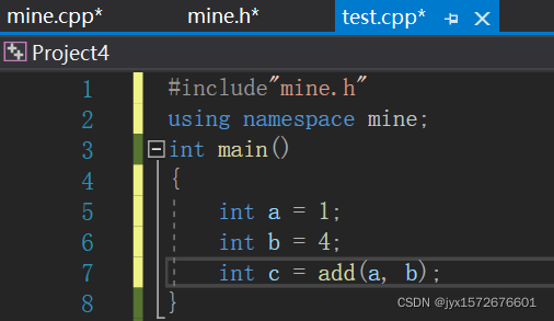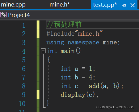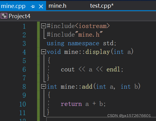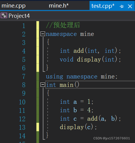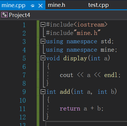 - 有人可能会问,为何在上面图片中,mine.cpp中不直接using namespace mine?如下: