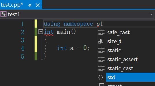 后来想想,可能是因为std是编译器内置的标识符,所以不会即时报错。从下图的索引便能看出: