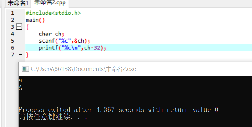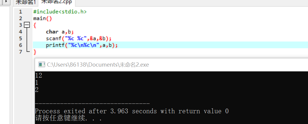 9.编写程序,通过scanf()函数接收两个字符型变量,并输出。