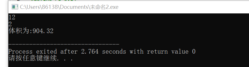 10.编写程序,接受圆柱体的底面半径和高,输出其体积。(结果保留两位小数)