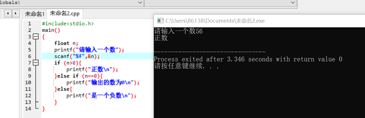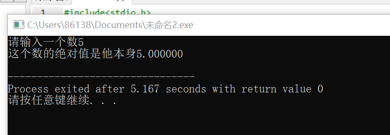 printf("这个数的绝对值是他本身%f\n",a);