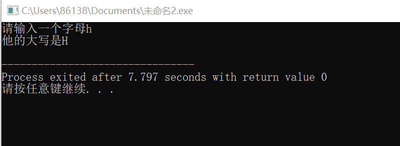 printf("他的大写是%c\n",a-32);