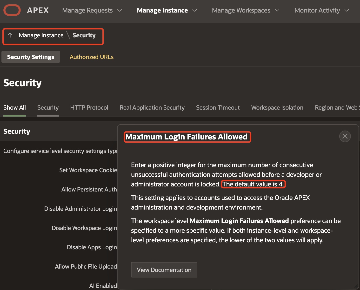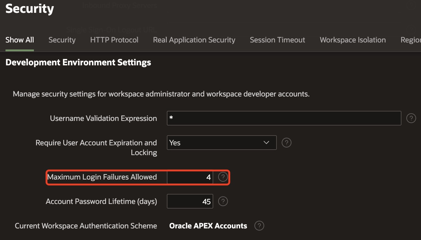 因为APEX为了账号的安全性考量,默认会有这样的安全策略设置: