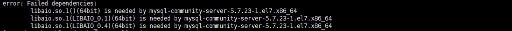 libaio.so.1()(64bit) is needed by mysql-community-server-5.7.23-1.el7.x86_64