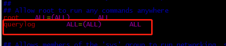 编辑文件 vim /etc/sudoers