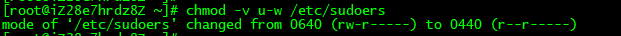 收回权限 chmod -v u-w /etc/sudoers