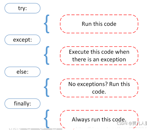try 关键字后缩进的代码块简称 try 块,它里面放置的是可能引发异常的代码;
