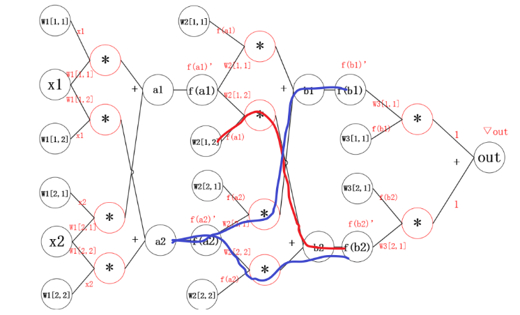 反向传播的思想就是对其中的某一个参数单独求梯度,之后更新。更新参数之后,继续反向传播。
