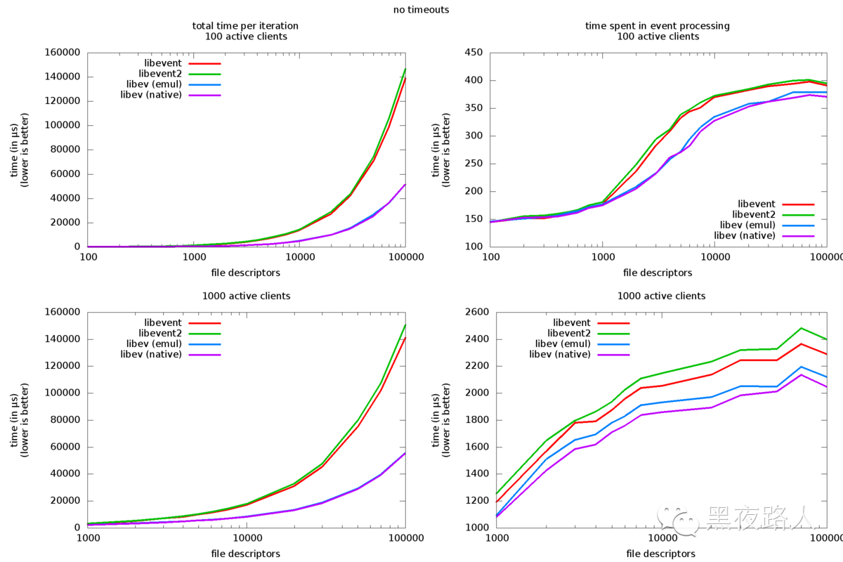 结论:The cost for setting up or changing event watchers is clearly much higher for libevent than for libev。具体性能对照測试參考这http://libev.schmorp.de/bench.html