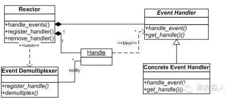 事件处理程序提供了一组接口。每一个接口相应了一种类型的事件,供Reactor在相应的事件发生时调用,运行相应的事件处理。