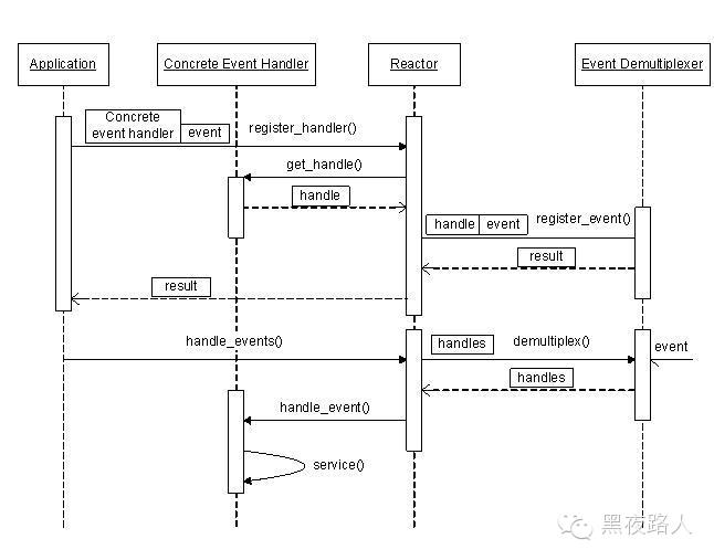 前面说过Reactor将事件流“逆置”了,使用Reactor模式后,事件控制流能够參见以下的序列图。