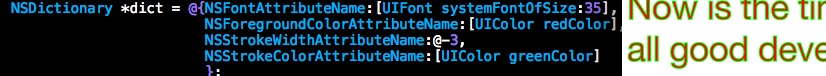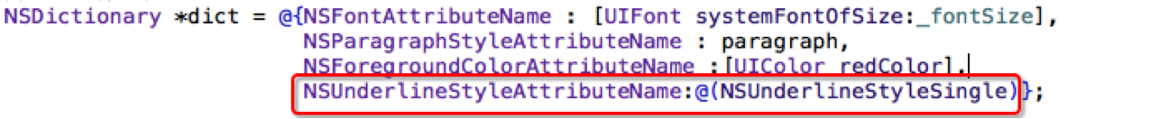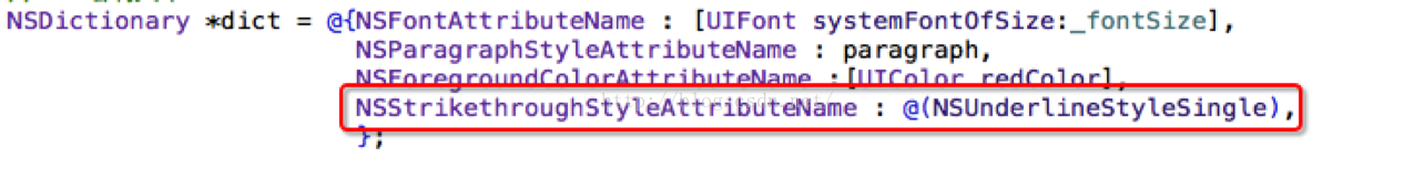 8. NSStrikethroughStyleAttributeName 加入删除线。strikethrough删除线