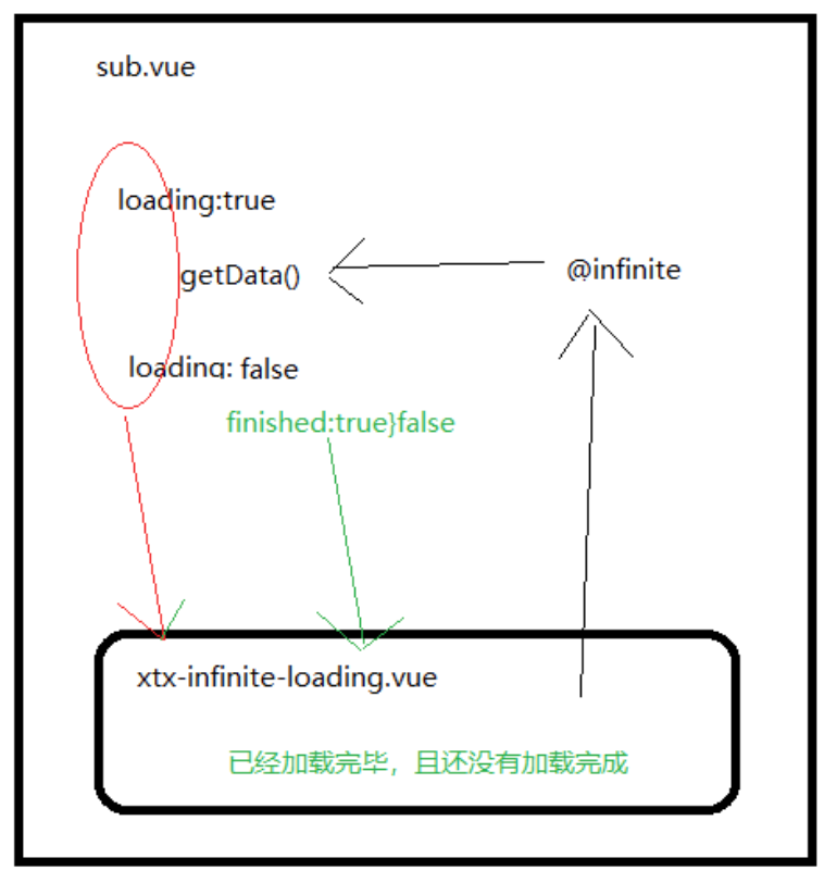 2.父组件每次发送请求都要改变请求参数,比如page++,当数据全部请求完毕(这次请求没有数据返回)之后,设置数据加载完毕状态finished为true,这样数据无限加载组件就会显示加载完图案
