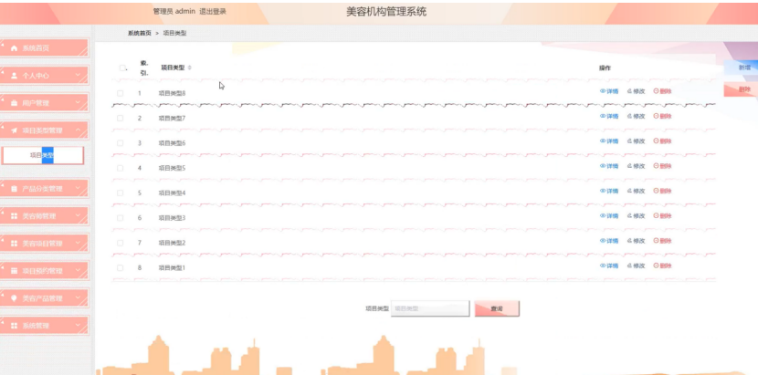 项目类型管理:管理员可以对美容计划的类型进行分类管理。