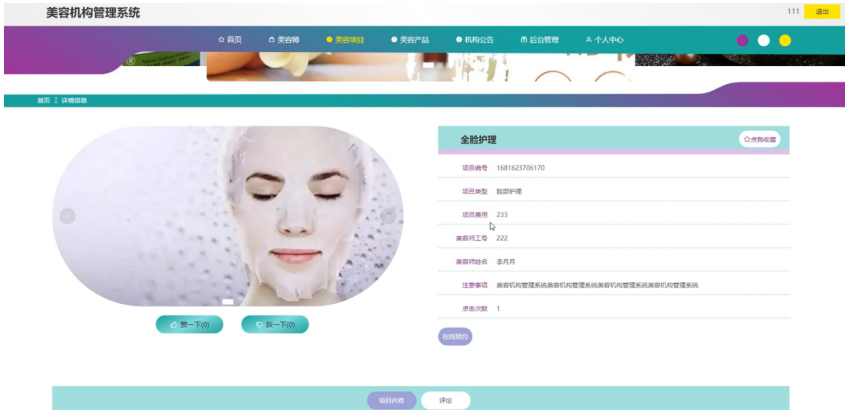 项目预约管理:用户许可在线预约美容项目,管理员可以查看和管理预约信息。